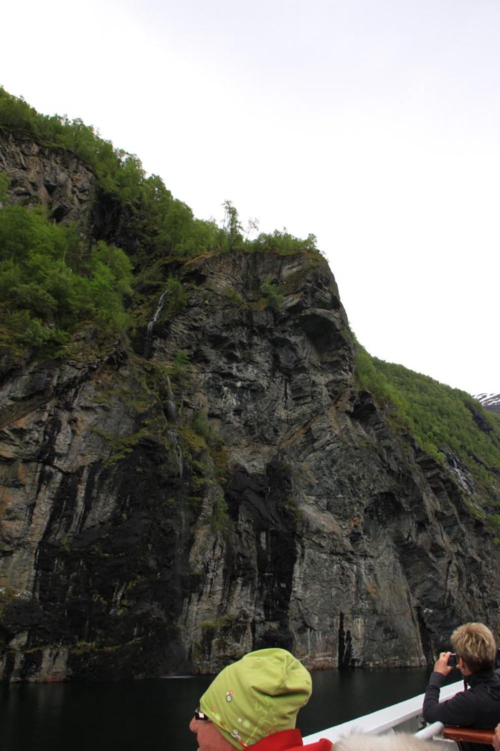 Die Einfahrt in den nur 16 km langen Geirangerfjord ist sehr beeindruckend. Schroff abfallende Felsen, Wasserfälle und atemberaubende Natur lässt uns erkennen, wie klein wir doch sind.